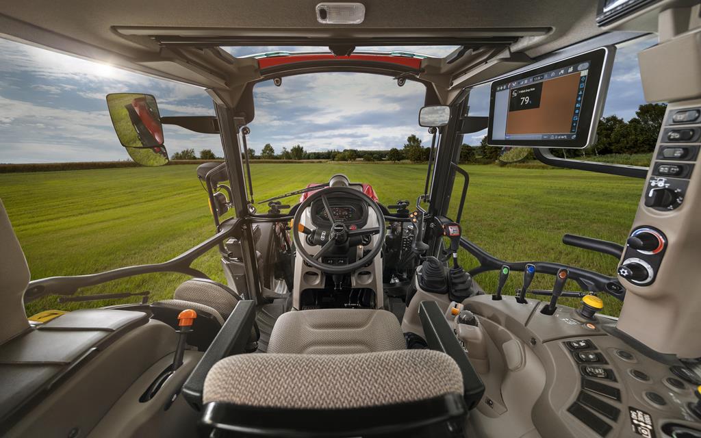 Široko odpiranje steklenih vrat ter visoka odprtina (praktično do vrha kabine) omogočajo enostaven, lahek in hiter vstop v kabino z obeh smeri. Ergonomsko oblikovana kabina z ravnim dnom in strešnim oknom je pregledna in prostorna, kar vam omogoča, da lahko imate traktor ves čas pod nadzorom, s čimer bo vaše delo opravljeno hitreje, natančneje in bolj kvalitetno. Pri delu s prednjim nakladalcem pa se odlično izkaže serijsko vgrajeno strešno okno z možnostjo odpiranja, ki omogoča izvrstno vidljivost. Popolnoma nastavljive delovne luči, integrirane v streho vam razsvetlijo delovni prostor, kar vam omogoča, da neovirano nadaljujete z delom tudi takrat, ko se zmrači.