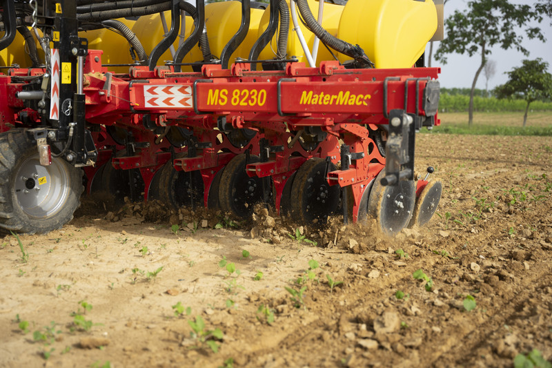 Sejalnica MS 8230 je izjemno vsestranska, saj omogoča ozke transportne širine tudi pri sejalnicah z delovno širino 6 m zahvaljujoč hidravličnem sistemu EASY-SET (patentiranega s strani podjetja MaterMacc) in zložljive orodne vrste/palice.