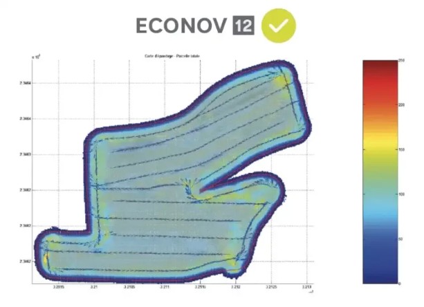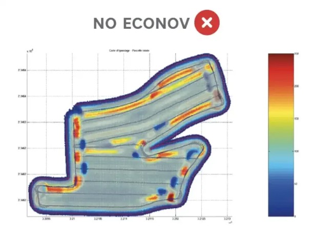 ECONOV je edina tehnologija na svetu, ki upravlja realno obliko razprševanja (ki ni popolnoma ravna, ampak rahlo ukrivljena) neposredno iz terminalov ISOBUS (QUARTZ 800) ali ne-ISOBUS (Matrix 840 GS).